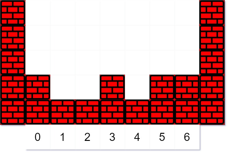 Input: heights = [2,1,1,2,1,2,2], volume = 4, k = 3