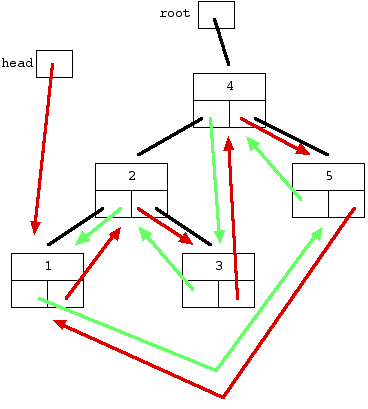 A circular doubly-linked list. Think of the left and right pointers in a tree as synonymous to the previous and next pointers in a list.